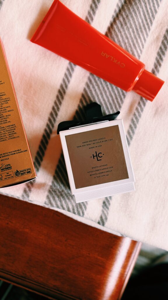 Hotel Lobby is launching a gorgeous new candle scent today and I had a preview! It smells divine. Slightly sweet and effervescent — light, festive! I’ve been burning it in my studio this week and it makes me feel light and happy. This would be a cute gift to stock up on for the holiday season.