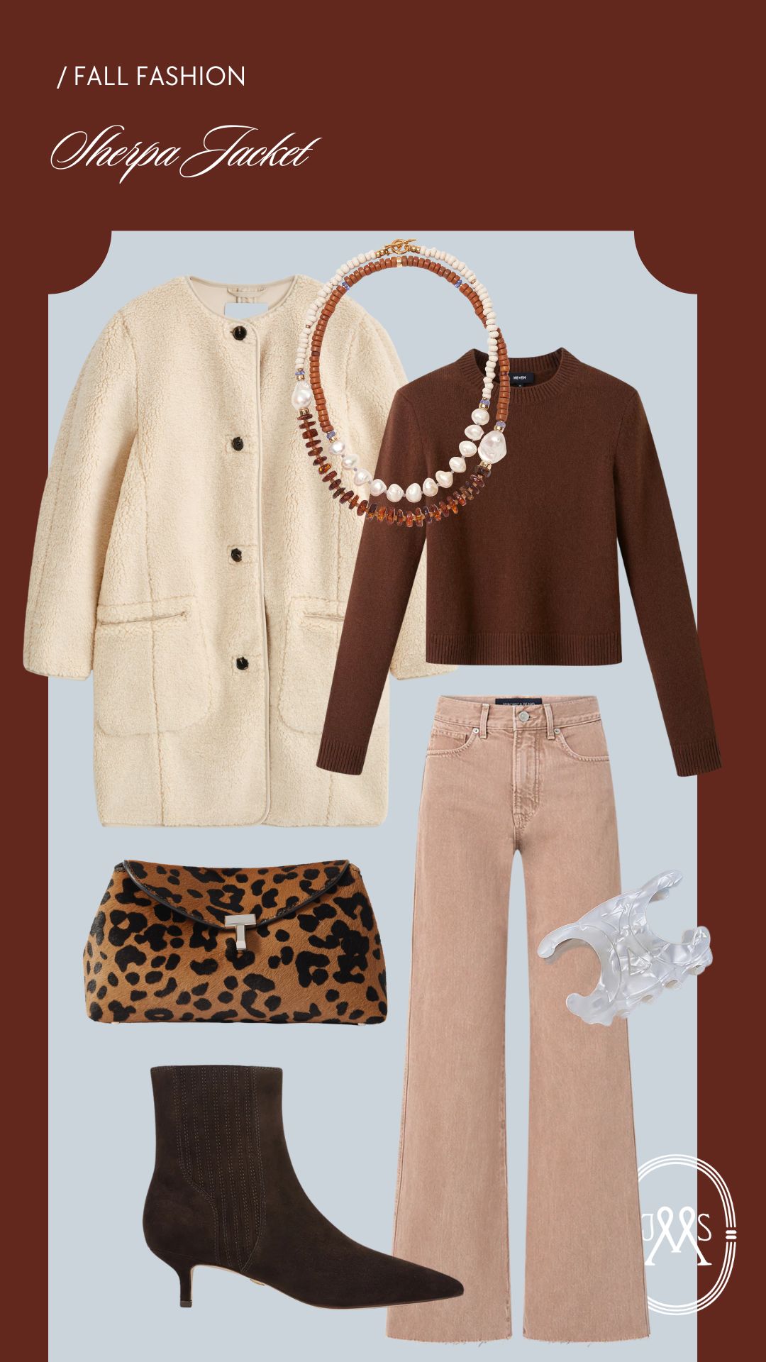 COS SHERPA JACKET // LIZZIE FORTUNATO NECKLACE // ME + EM SWEATER // VERONICA BEARD JEANS // TOTEME CLUTCH // AMAZON HAIR CLIP // VERONICA BEARD BOOTIE