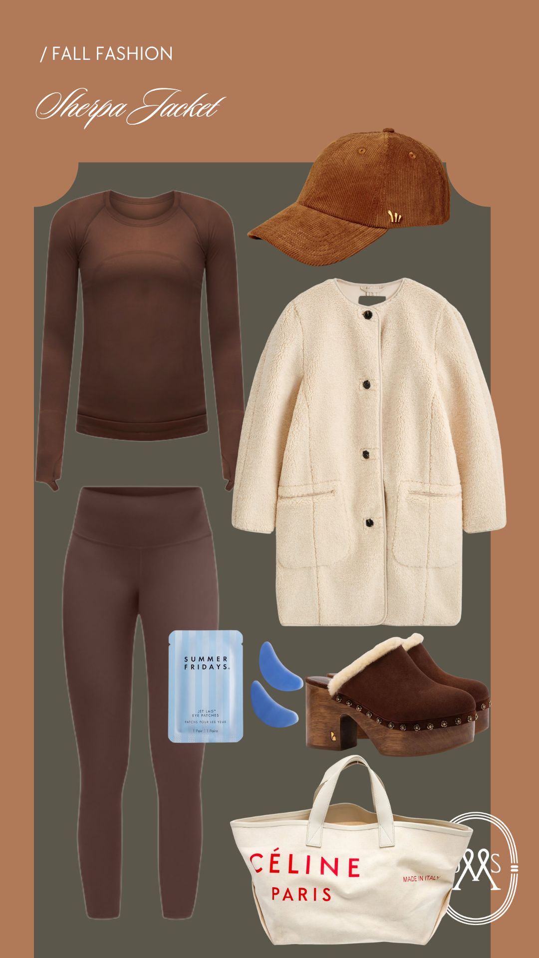 COS SHERPA JACKET // CHORD HAT // LULULEMON SWIFTLY TECH TEE // LULULEMON ALIGN LEGGINGS // SUMMER FRIDAYS EYE PATCHES // LARROUDE CLOGS (CHLOE VIBES!) // CELINE TOTE