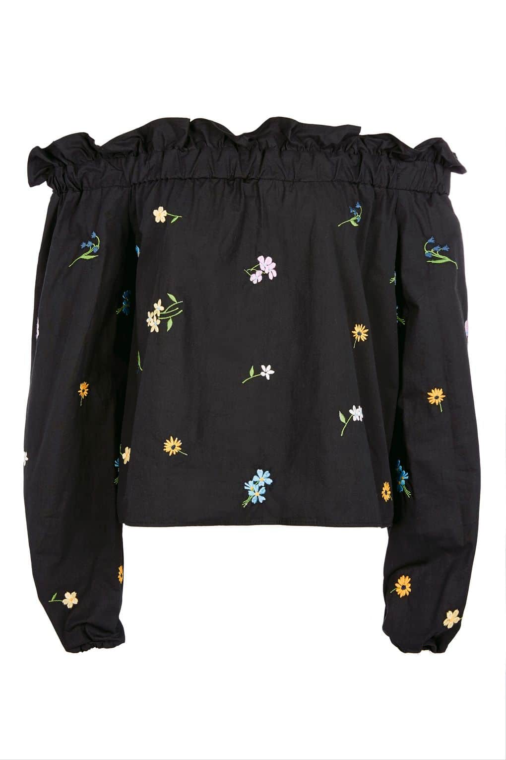 I had to have this fun little OTS top ($65) — it combines a few of my favorite things: dark florals and embroidery. I like the idea of pairing it with my white distressed skinnies and huge black shades.