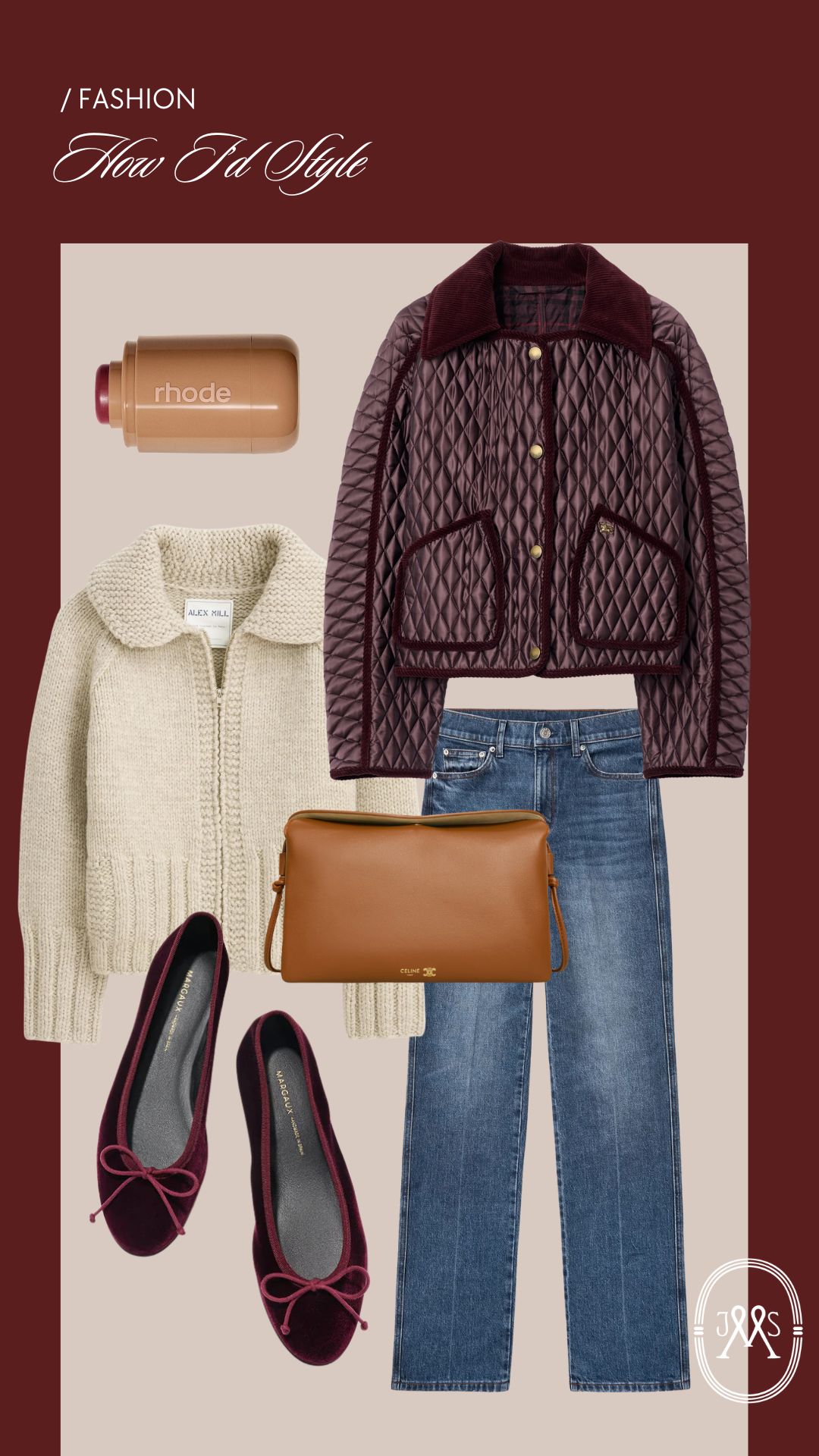 VELVET FLATS // AYR LEGEND JEANS // ALEX MILL CARDIGAN // BURBERRY COAT // CELINE BAG // RHODE POCKET BLUSH