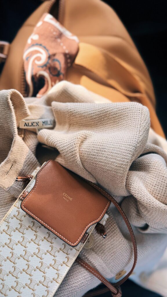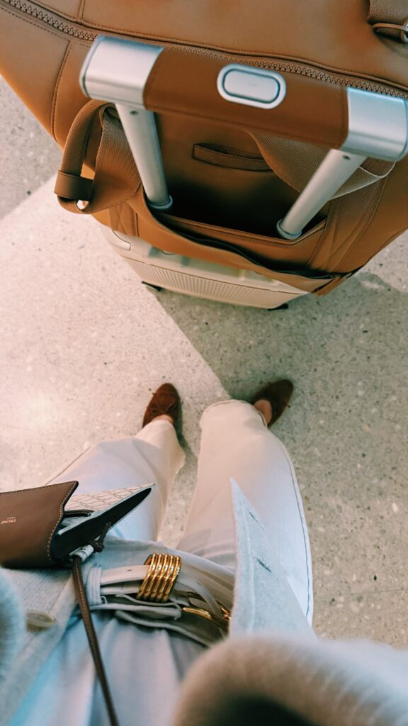 I truly love this carryall (XL size) — it has an interior pocket for a laptop as well as several other handy pockets and pouches — and it fits underneath a plane seat, so it counts as a personal item despite carrying a ton. I also love the little sleeve on the exterior that you can slip right over a roll-a-board handle. My suitcase is Paravel (RIP!!! I can’t believe that brand disappeared over night) but these new aluminum-edge suitcases from Away deliver a similar aesthetic. I also have to again plug the utility of this little Celine phone sling (more here). I bought this kind of on a lark a few years ago and it is one of my most-used bags. Perfect for travel, concerts, days out, etc. You can be hands free but keep your phone, ID, and credit card on your person at all times without lugging a huge bag. Great for Disney for this reason, too. Rothys has a great option for much less that I think is really fun / cute — under $100.