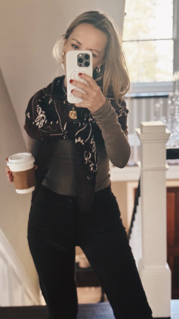 I took SO few pictures this week — I was visiting my sister and her wife in Boston and was mainly focused on them! I’m bummed because I did like my outfit for their cowboy-themed book club (which I dropped in on!); I wore this dress — the top-stitching is such a cute and unexpected way to channel Western style — with Isabel Marant boots (look for less here), this APC bag, and a bandana print wool bend shawl. I wish I’d snapped a photo; it felt perfect. And I was stopped twice in Boston by kind women asking about the outfit provenance!
