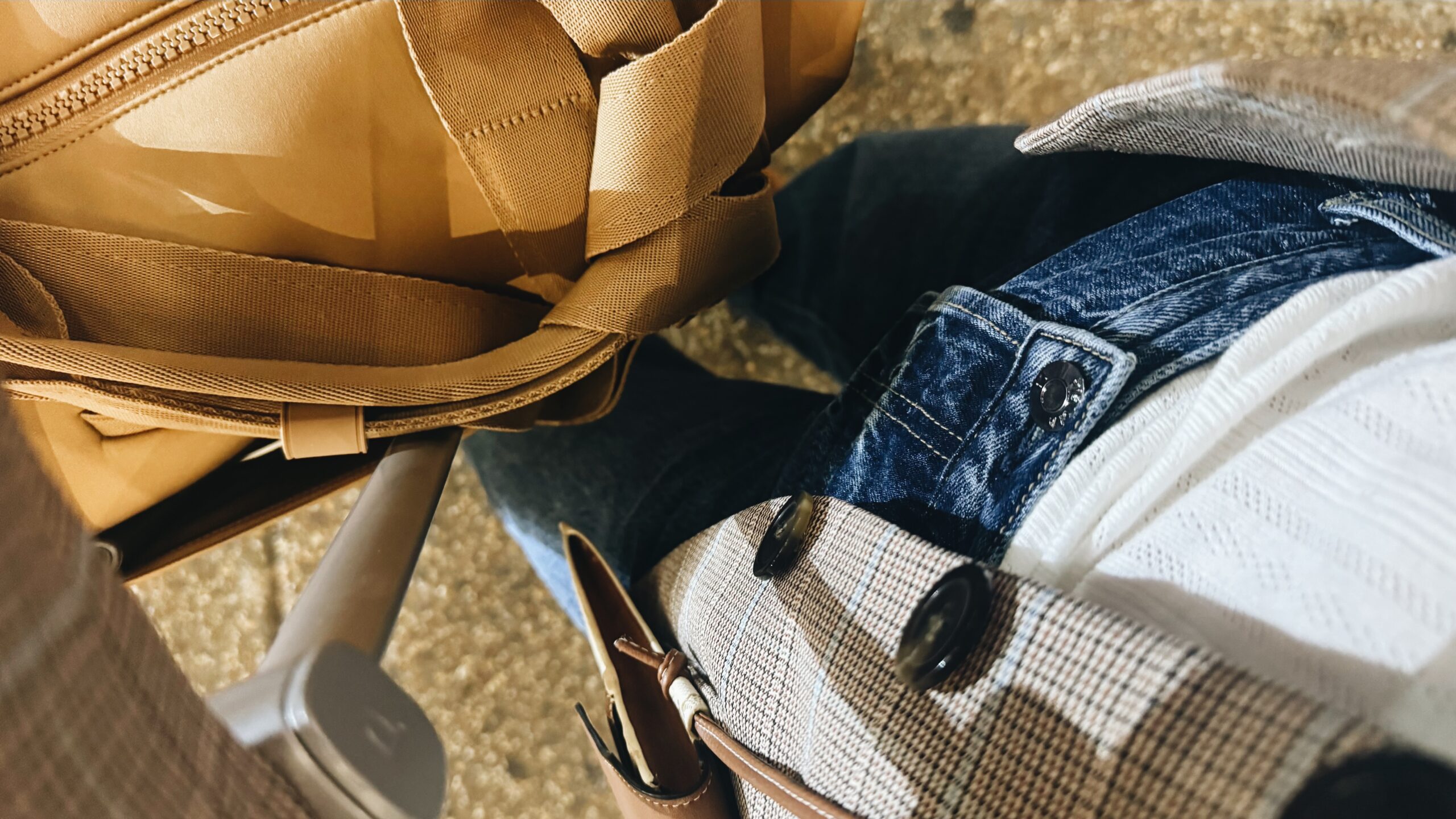 My other travel day must: layers! I am always cold on planes and like to wear a soft cotton tee, some sort of heavier sweater/knit/jacket (this week I wore this from Alex Mill!), and then a scarf or shawl just in case.