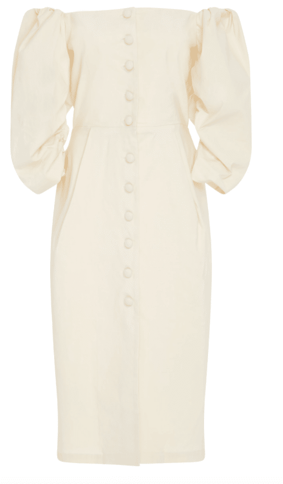 At the top of my lust list — likely because I’ve been watching The Marvelous Mrs. Maisel and I’m into all of the 50s era nipped waists, oversized buttons, and ladylike cuts — is this stunning SEA dress, which looks like a perfect pick for a town hall wedding or bridal shower or mother-of-the-bride dress at a more casual wedding: