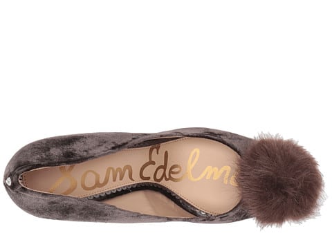 +Poms are IT for fun holiday footwear, and my top picks are either these velvet kitten heels from Aquazzura ($650) or these wallet-friendly Sam Edelmans ($129).